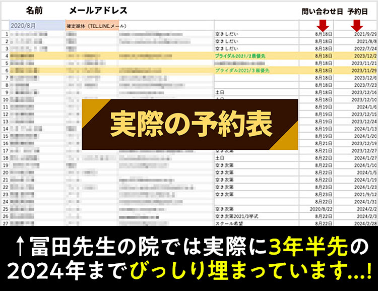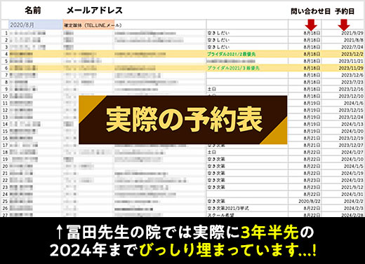 しかも、これはただの感想ではないのです。実際に、この治療法「RE:SET~Auto Update Therapy~」を開発した冨田先生の院では、なんと…あまりの人気ぶりに新規患者さんの予約を断っても断っても予約が入り続け、現在は予約3年半待ちにまでなってしまいました。